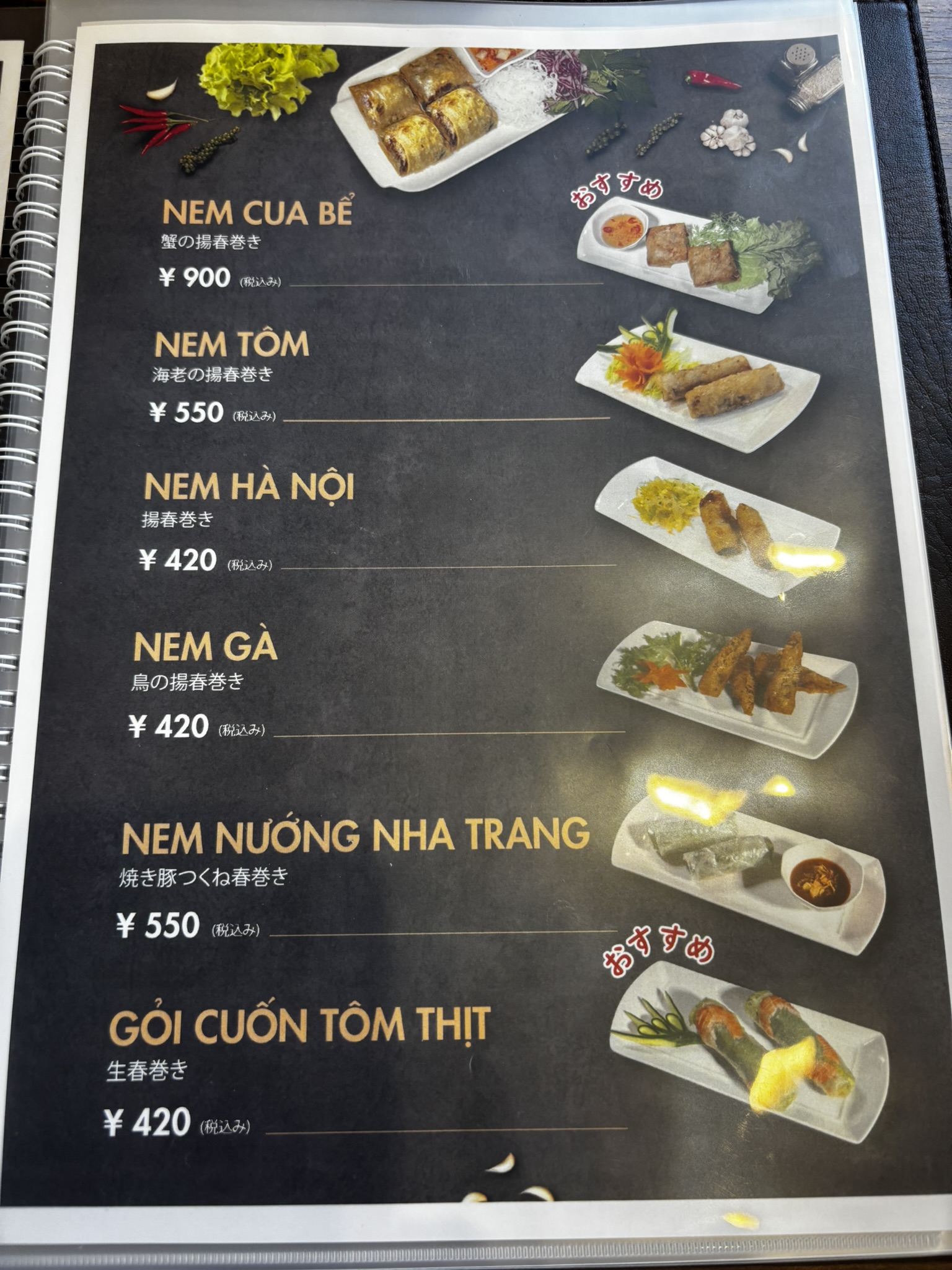 店名に“ネム(春巻きの意味)”とあるように、春巻きメニューが推しのようです。