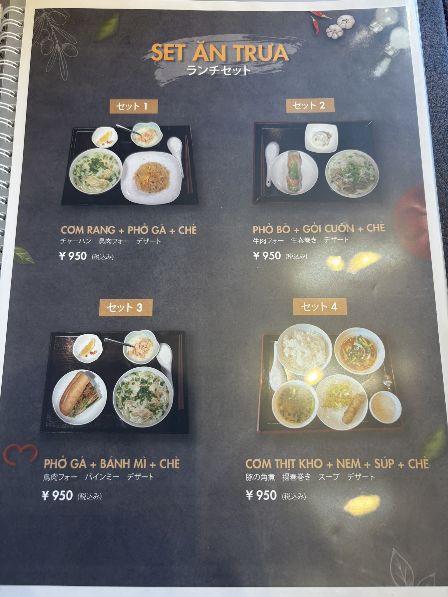 フォーもバインミーも食べたいので、そうなると「セット3(鶏肉フォー・バインミー・デザート)」なのですが、鶏肉じゃなくて牛肉のほうが食べたい。