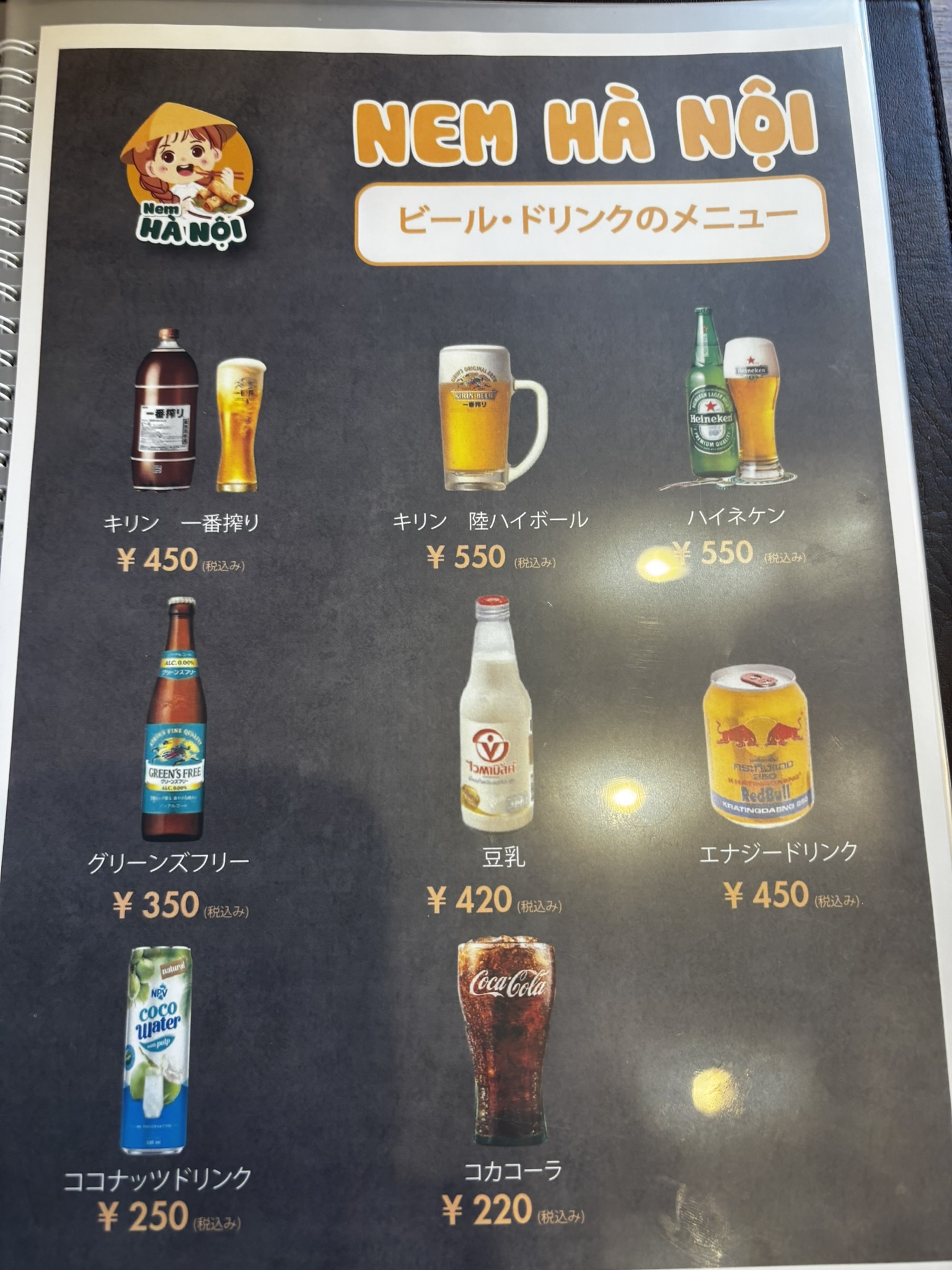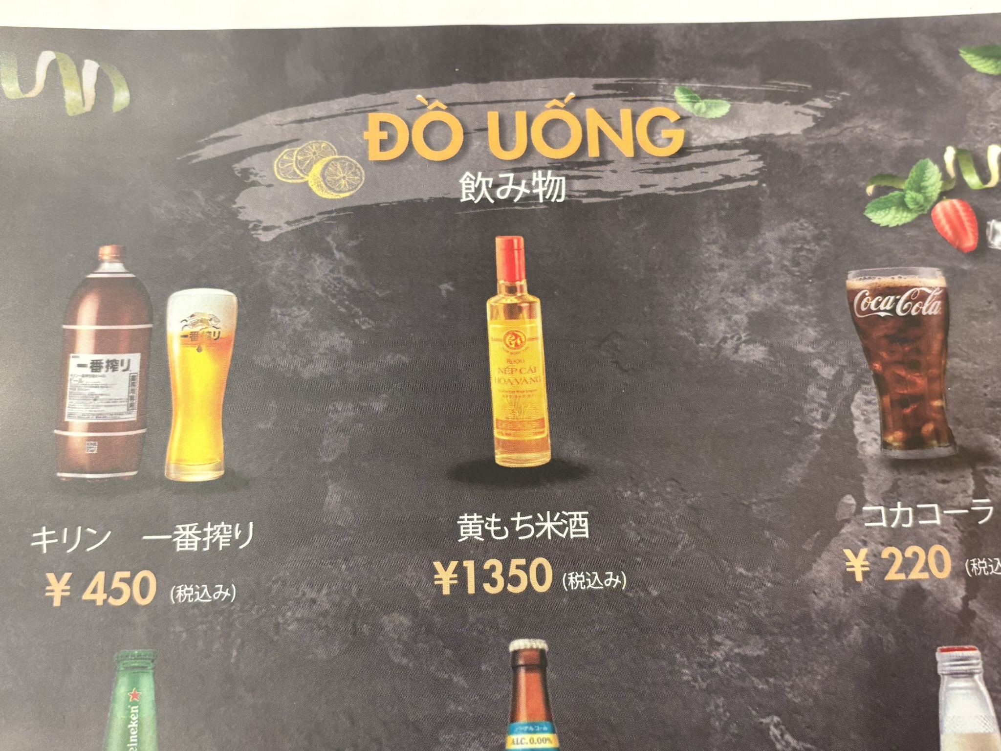 それで、わたしはベトナムのビールかレモンチューハイが飲みたかったのですが、なかったので上のメニューから選ぶことに。