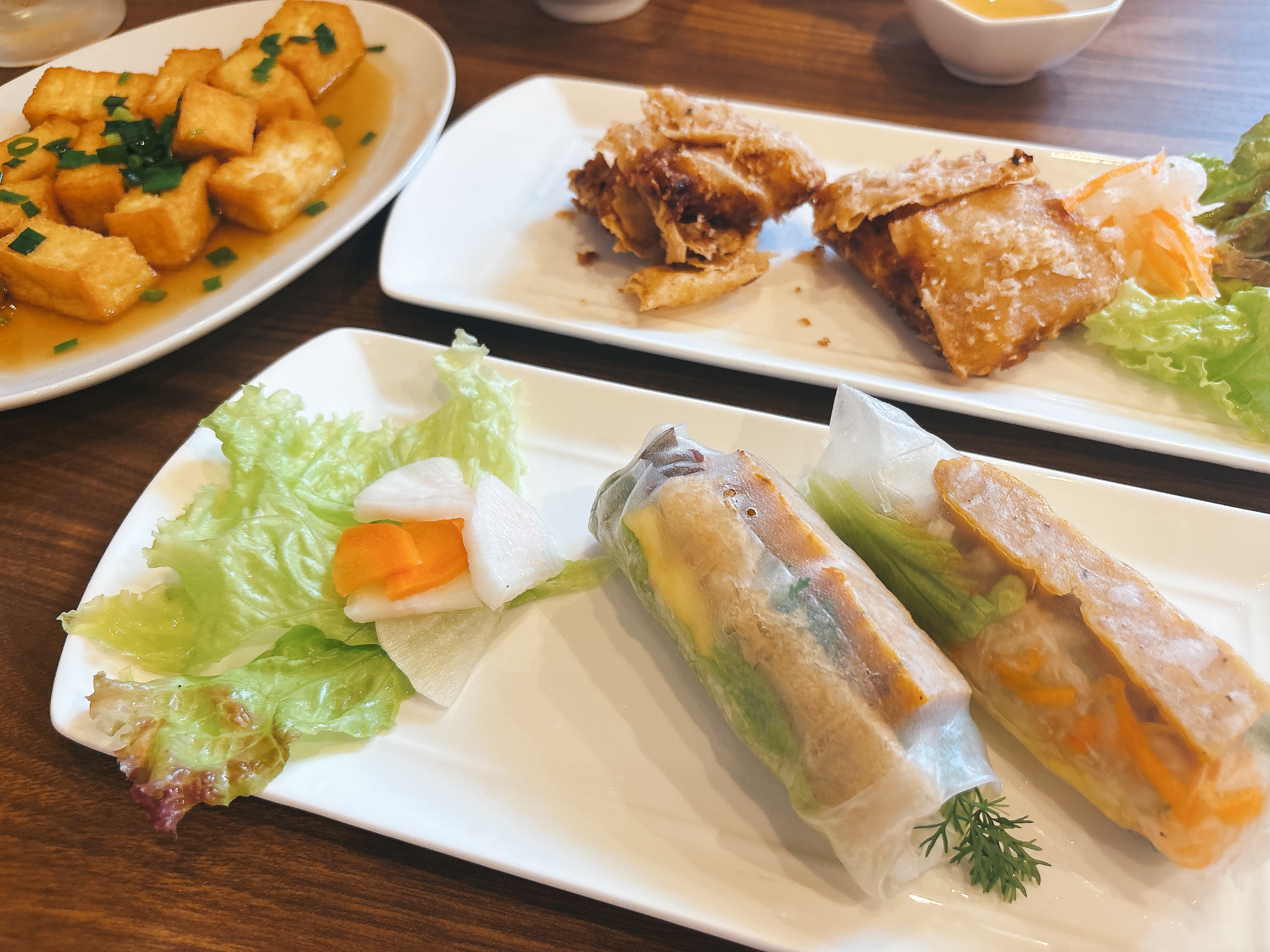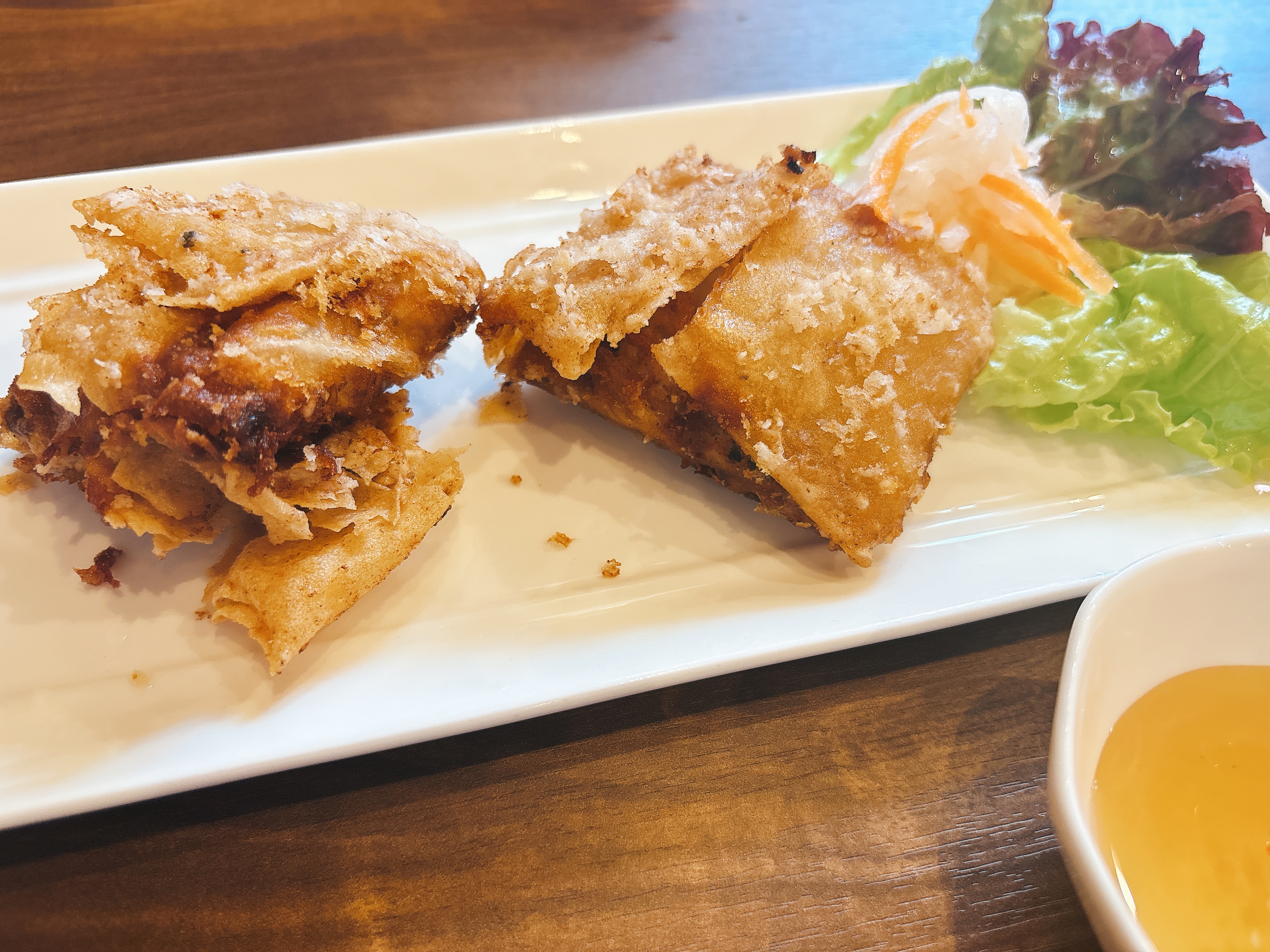 おすすめは、四角い形をした蟹の揚げ春巻き。