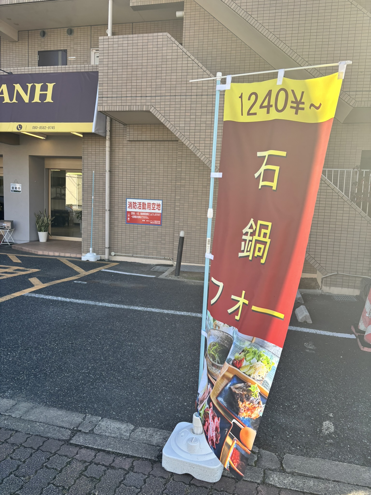 「石鍋フォー」が看板メニューのようで、のぼりがはためいていました。
