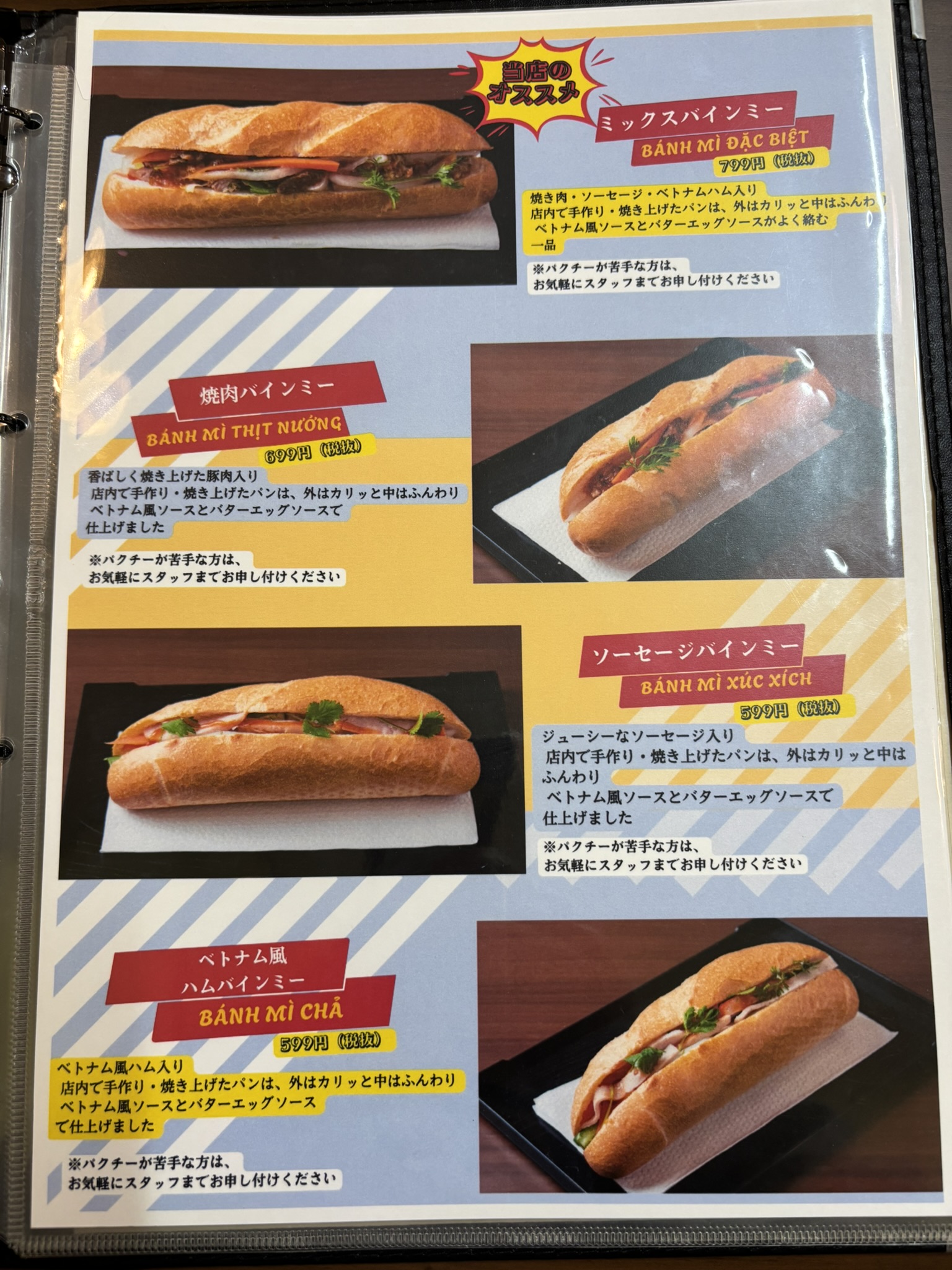 バインミーはお持ち帰りができるようです。