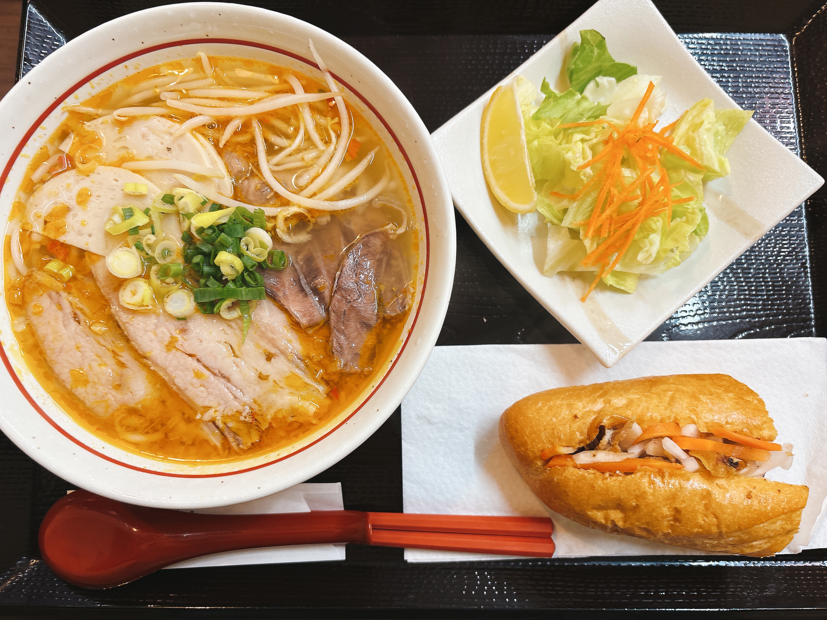 麺とバインミーのどちらも食べたい者としては、好きな麺料理と1/2サイズのバインミーを組み合わせて選べるのはとてもうれしい!