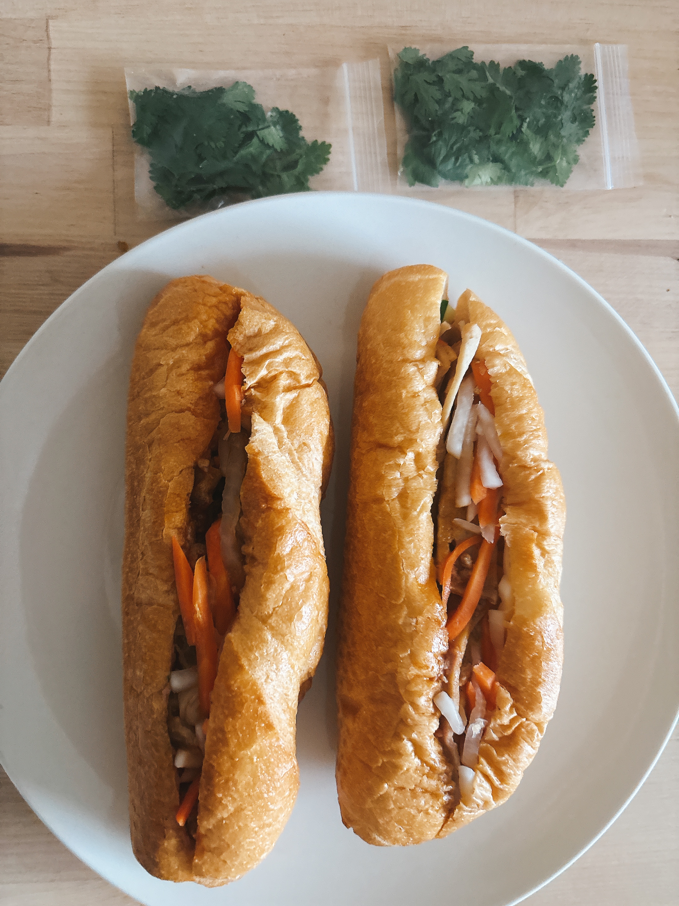 持ち帰ってきたバインミーはパクチーが別添えになっていました(パクチーは夫に・・・笑)。